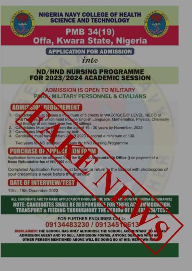 The Nigerian Navy College of Health Sciences (NNCHS) Offa was established in 1984 as NN Medical Staff Training School (MSTS) situated in NNS QUORRA. The idea to establish the College was conceived in 1982 to train middle level manpower to support the health professionals in the actualization of the primary objectives of the NN Medical Services. This step to localize professional courses in the NN was necessary due to the economic downturn of the nation as the medical ratings were trained abroad at huge expense to the nation in the past. This initiative has yielded the desired result as the College has since trained over 1000 middle level medical staff to support the NN and the nation at large.